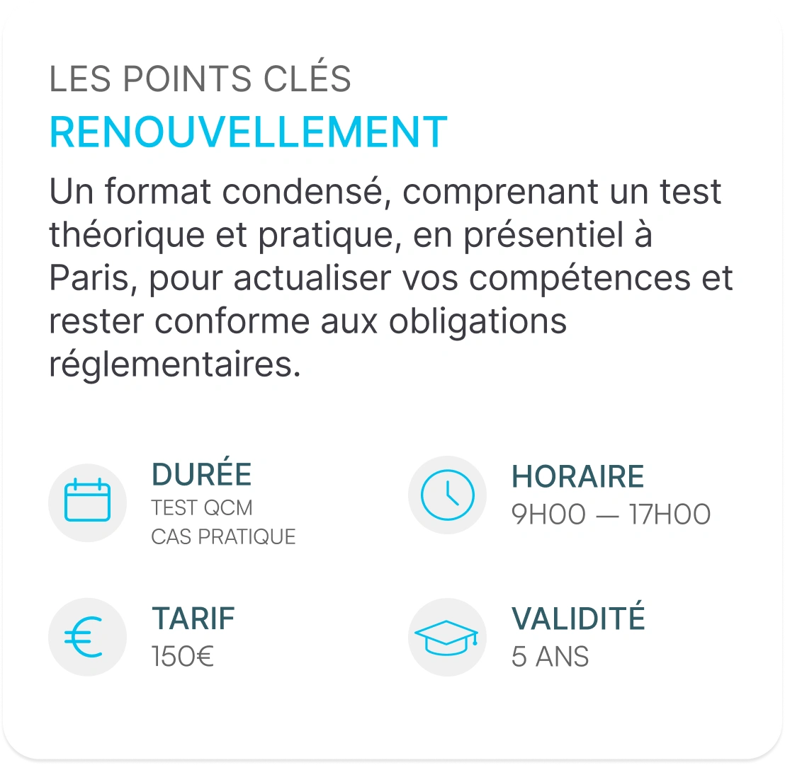 Vous avez suivi votre formation avant le 1er mars 2019 ? Il est temps de la renouveler pour rester en conformité avec la réglementation !